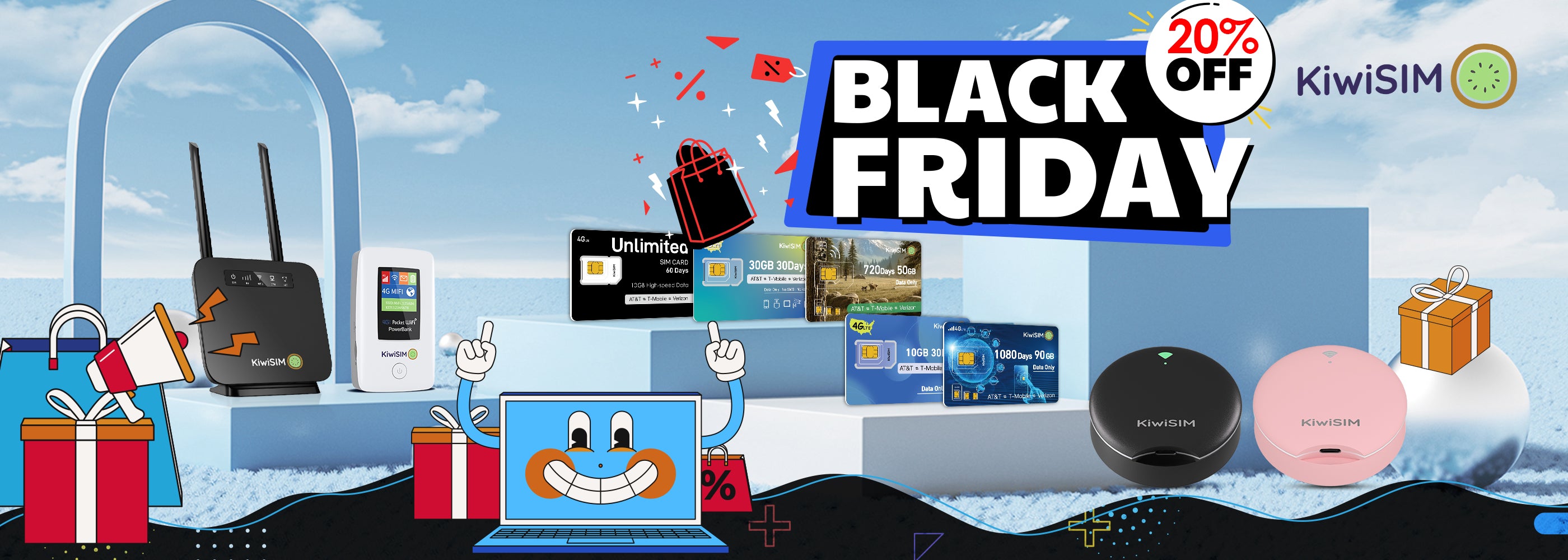 KiwiSIM 4G LTE WiFi Router with Sim Card, Portable Modem WiFi Router, 300Mbps WiFi, CAT4, Support AT&T and T-Mobile, 3000mAh Battery, Data SIM Card Included