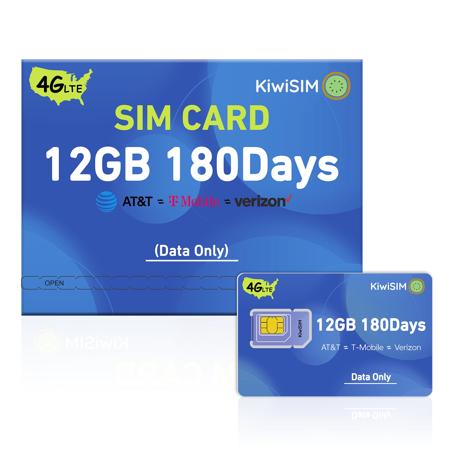KiwiSIM USA 4G LTE SIM Card-12GB 180 Days-Support for AT&T, T-Mobile and Verizon Network