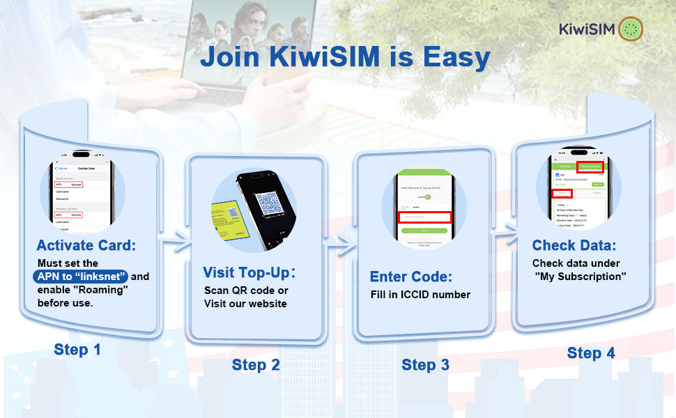 KiwiSIM USA 4G LTE Cellular Data Prepaid SIM Card-Support for AT&T, T-Mobile and Verizon Network