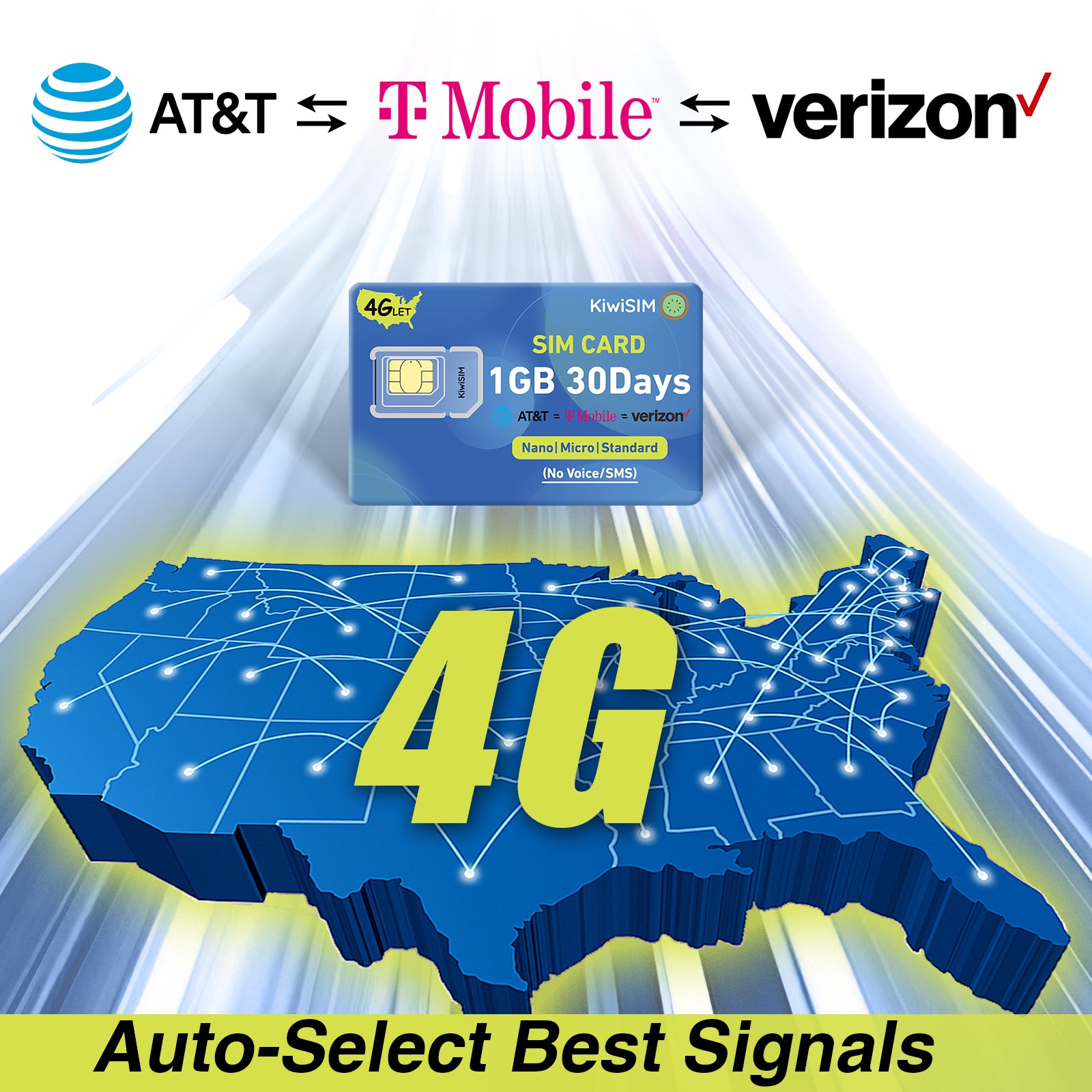 KiwiSIM USA 4G LTE SIM Card-Support for AT&T, T-Mobile and Verizon Network|3GB 30 Days