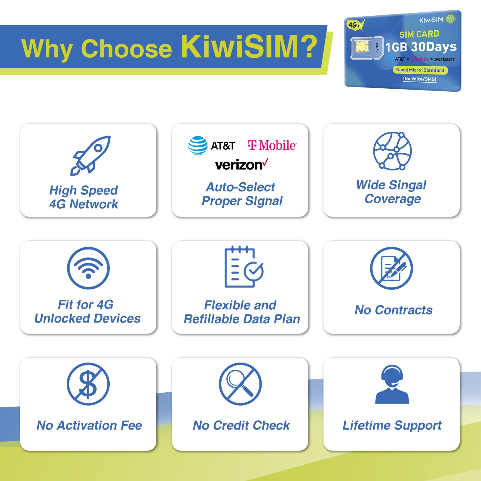 - Data Plan Details: KiwiSIM SIM card is data Only, do not support talk & text service(no phone number,a new card with a service plan, not a data refill, valid from first use