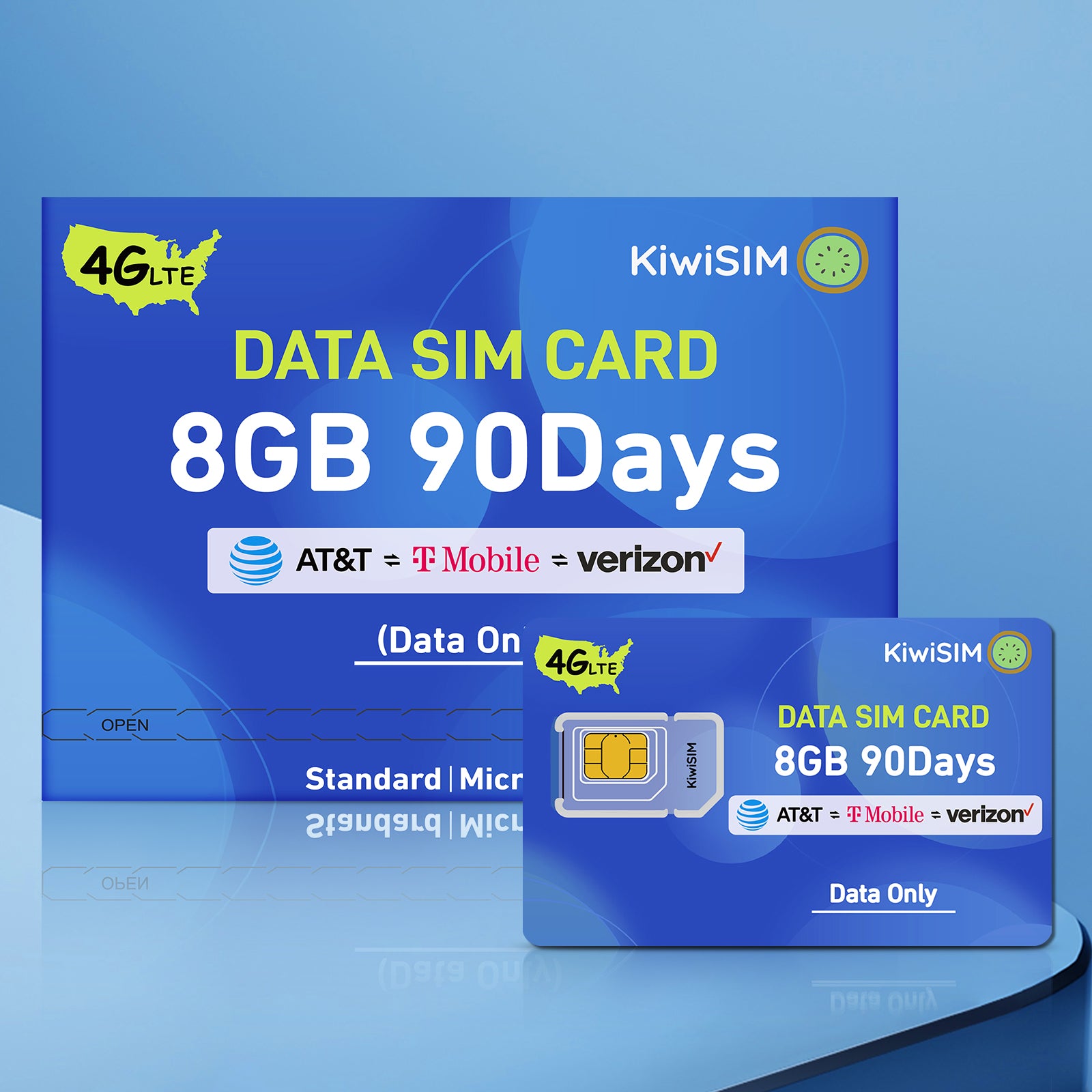 KiwiSIM USA 4G LTE SIM Card-Support for AT&T, T-Mobile and Verizon Network|8GB 90 Days