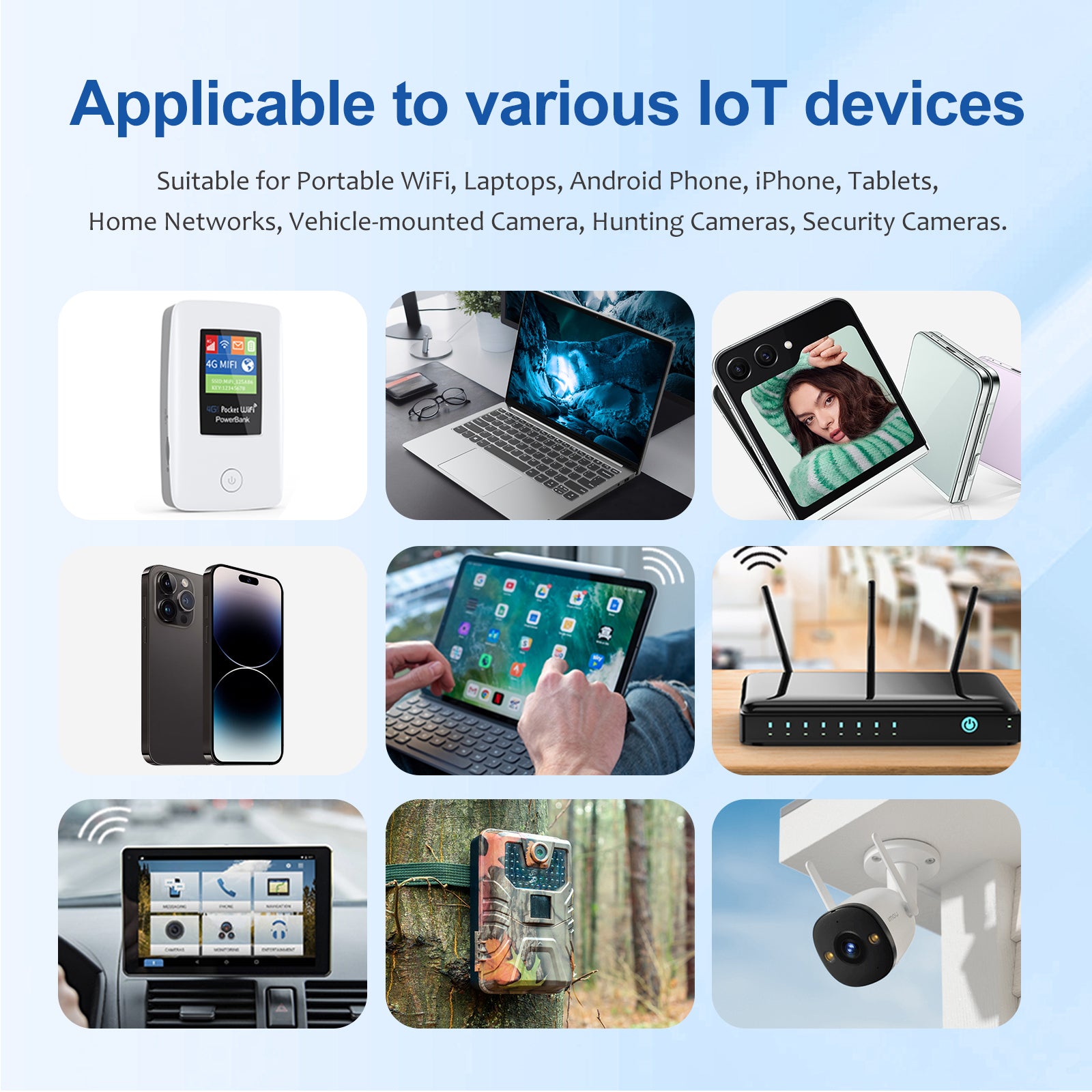 - Fit Unlocked 4G loT Devices: Our SIM card can be used for a lot of 4G devices, such as solar security camera, WiFi router, mobile hotspot, pocket WiFi, hunting camera, walkie talkie, 4G bird feeder and GPS pet/car tracker, etc.